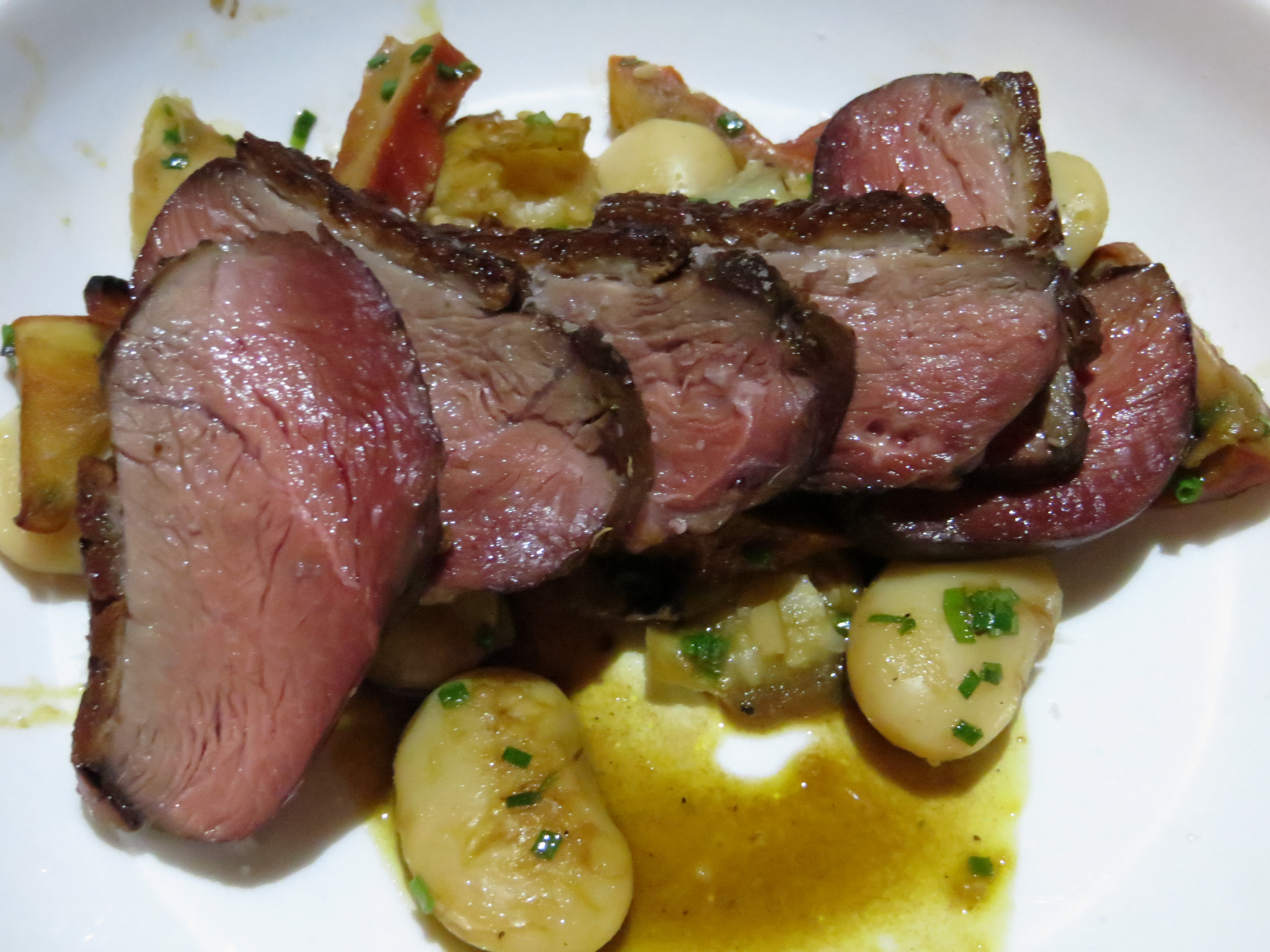 Duck with lobster mushroom and corona beans, photo by Christine Willmsen