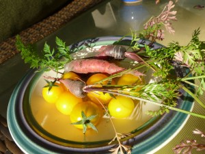 Quail egg, potage, ginger for the first course. Photo by Christine Willmsen